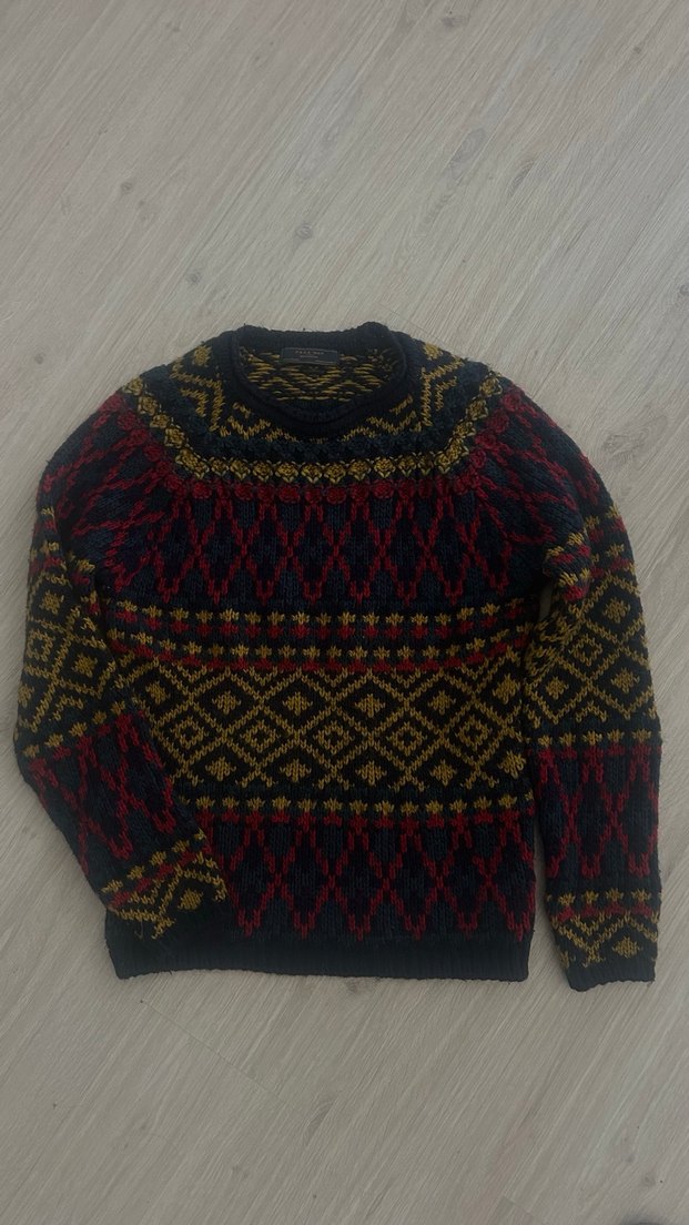 Hem kadın hem erkek için kullanilabilir. Yün kazak. Soğuk hava için iyi. Söküğü vs yoktur. uzun kollu, yuvarlak yaka, bol kesim örgü kazak.