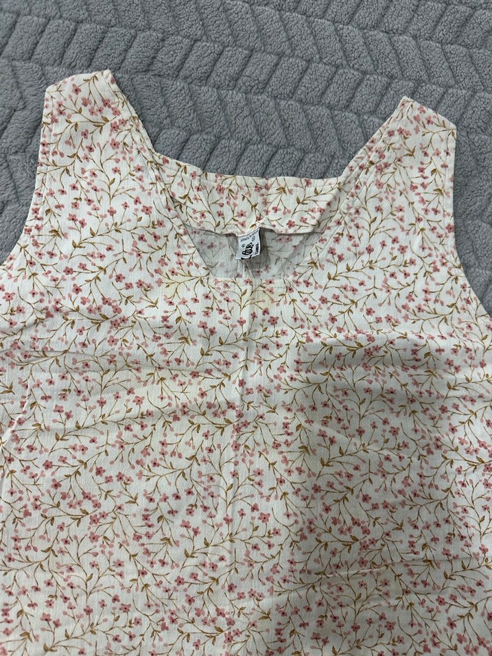 Hamile için tasarlanmış pamuktan yapılmış, kolsuz ve V yakalı elbise . Bol kesim, nakışlı çiçek desenleri ve düğme detayları ile bohem tarzı yansıtıyor.