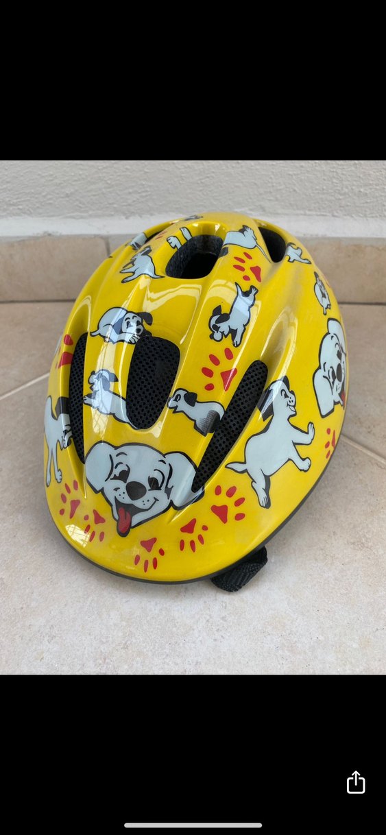 köpek desenli çocuk kaskı. 47-52cm ölçülerindedir. İthal üründür.