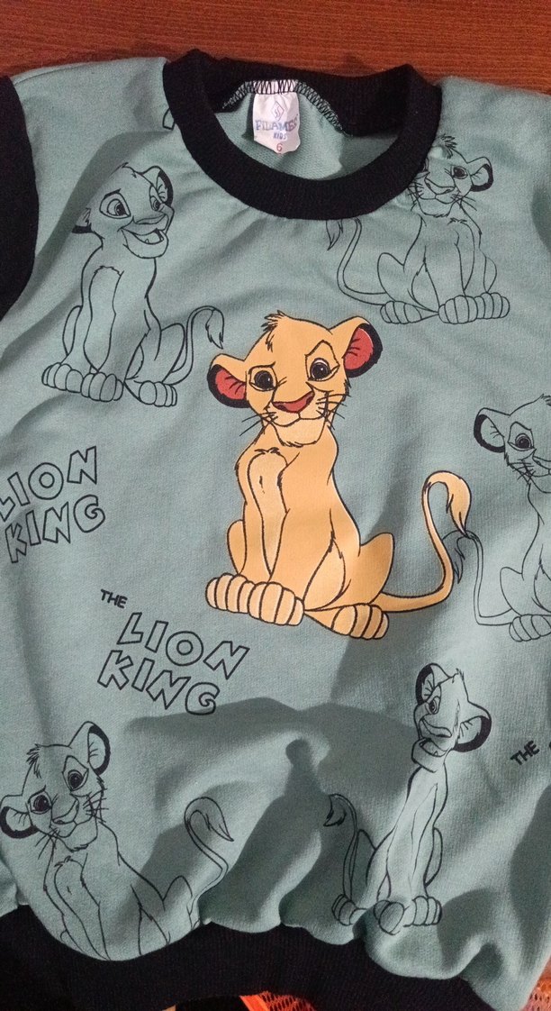 Yumuşak sentetik kumaştan, açık gri renkte ve Lion King desenli