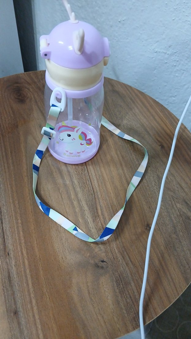 Pastel renkli, unicorn desenli çocuk matara, taşıma için renkli kayışlıdır. kızıma aldım ama 2.3 kere kullandı ona göre alım yapınız geri iade yok Sayfama beklerim