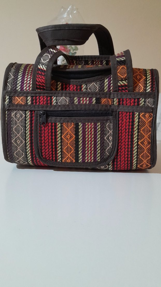 Desenli, çok renkli ve koyu tonlarda kumaştan yapılmış yoga kayışı, esneklik ve destek sağlar.