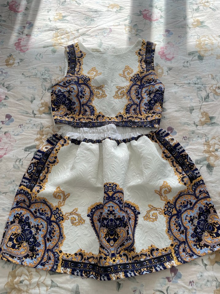 Kolsuz aşt üst takım hiç kullanılmadı etek biraz balon göbeği açık crop üst hem şık hem spor