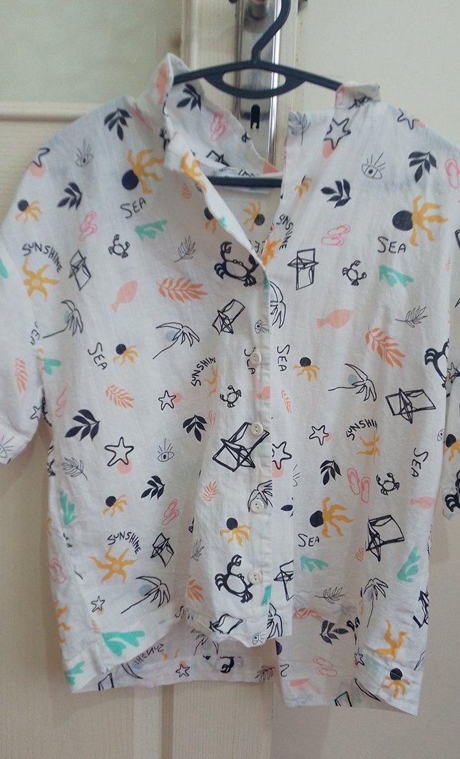 bol kesim, kısa kollu, yakalı ve düğmeli gömlek. Pastel tonlarda çok renkli desenlere sahip, günlük rahat kullanıma uygun.
