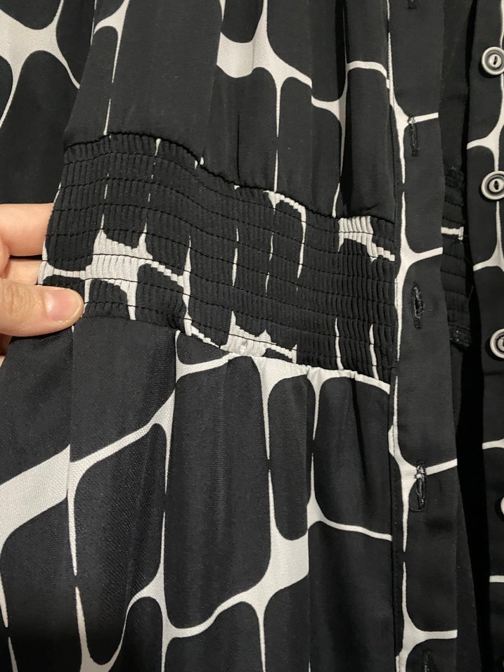 Bu siyah ve gri desenli, düğmeli , uzun kollu ve yaka detaylıdır. Sokak modasına uygun, uzun ve vücuda oturan kesime sahiptir.