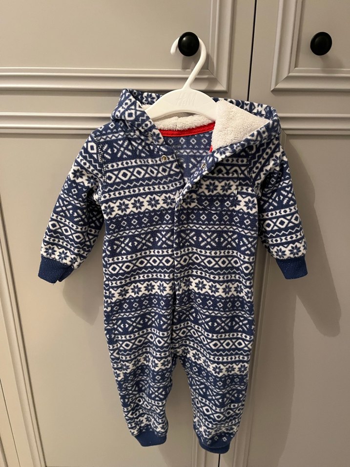 Gri desenli, örme detaylı erkek bebek tulumu, yumuşak ve sıcak polar astarlıdır. Kapüşonlu ve manşetli, soğuk hava için uygundur. ❄️