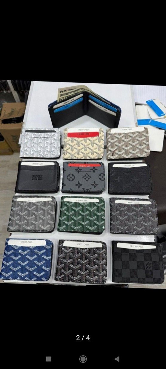 Sokak stili desenlere sahip koyu renkli erkek cüzdan seti. Çoklu kart bölmeleri ve kompakt katlanabilir tasarım sunar. Trend belirleyiciler için ideal.