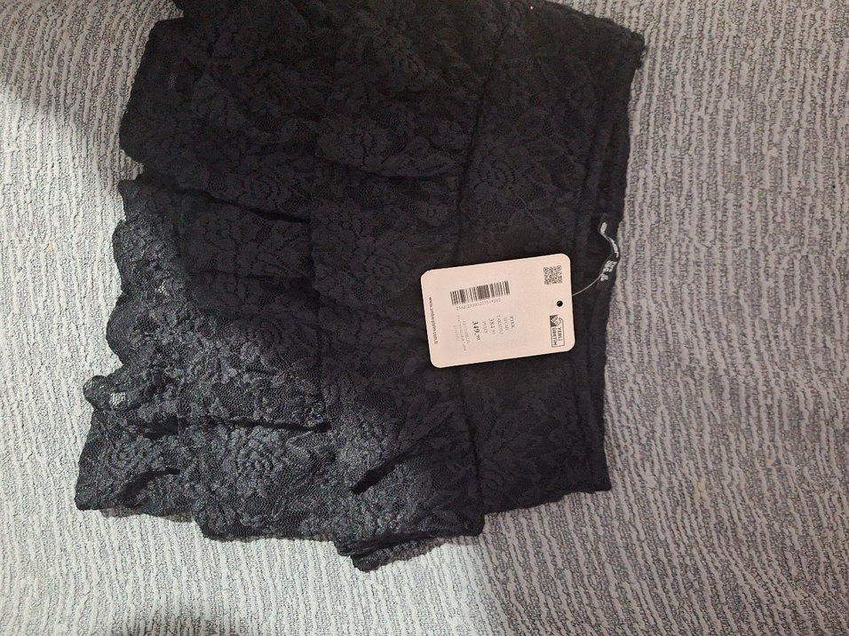 Siyah ve gri tonlarda, sentetik kumaştan yapılmış, baskılı desenli ve fırfır detaylı, vücuda oturan mini etek, gotik tarzda günlük kullanım için uygundur. Hiç kullanılmadı. Benim için fazla kısa olduğundan satıyorum. Tam popo altında bitiyor. Açılma ihtimali de olabiliyor. İçi şortlu