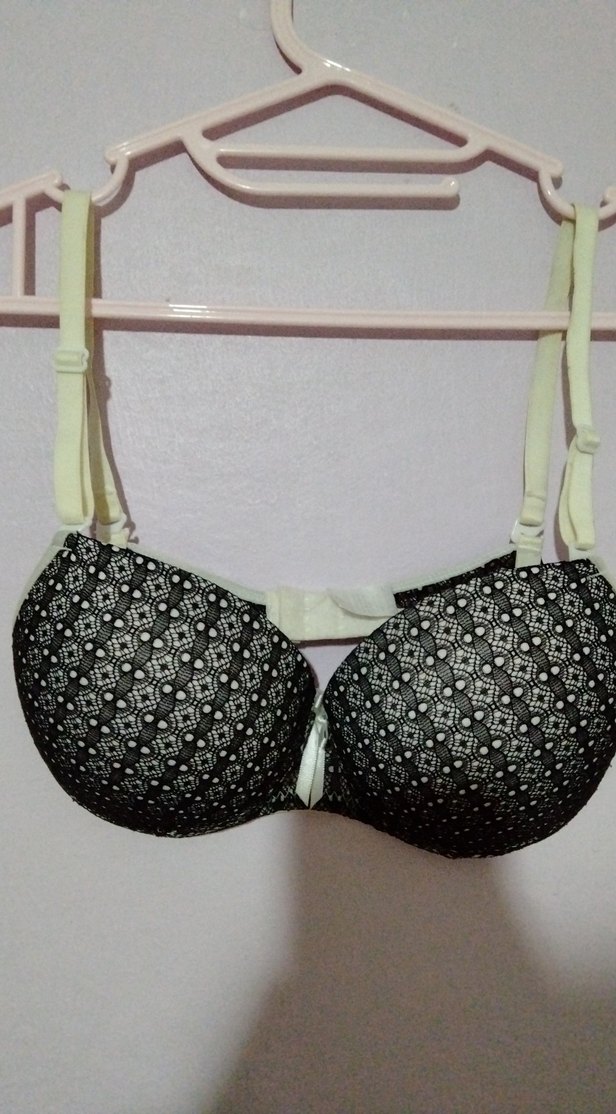 Desenli, bej askılı ve gri-siyah tabanlı, Parisli gotik tarzda normal uzunlukta sütyen.hic kullanılmadı. askılar hafif sararmış olup yarım dolgulu desteklidir.