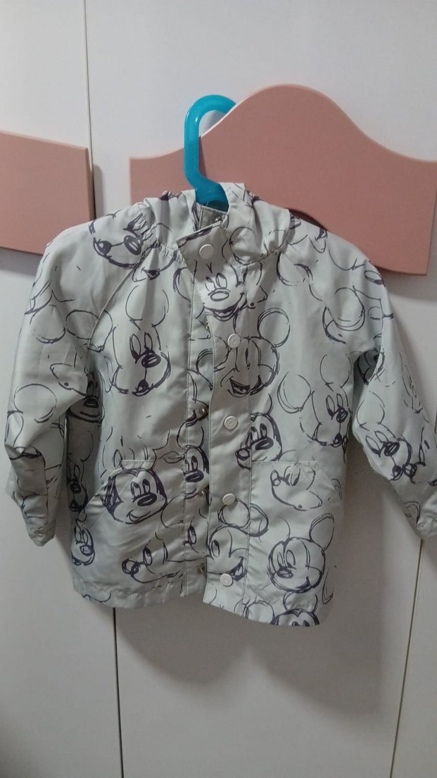Düğmeli, yakalı ve bol kesim olan bu erkek çocuk yağmurluğu, gri beyaz sentetik kumaş üzerine desenlidir. Streetwear tarzına uygundur. ☔