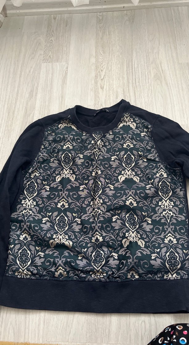 Kadın sweatshirt, yuvarlak yaka ve uzun kollu, bol kesimdir. Desenli ön kısmı düğme detaylıdır, günlük kullanıma uygundur. Koyu gri renk rahat bir sokak tarzı sunar.