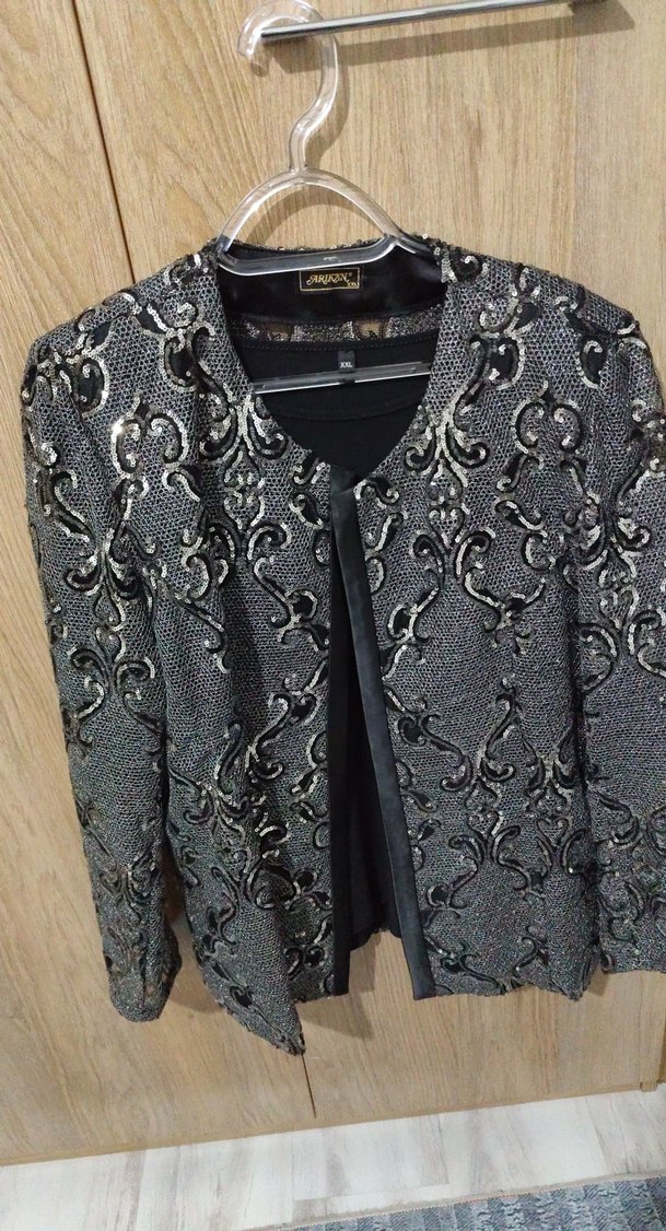 Pul işlemeli iki parçadan oluşan ceket iç bluz dahil dir.