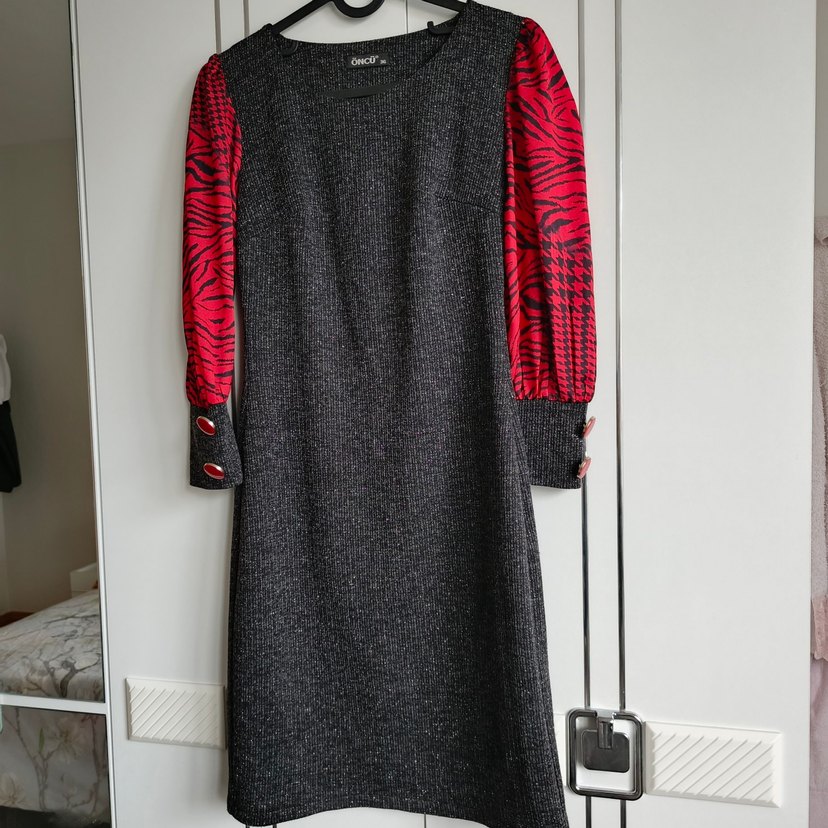 tam kışlık kolları şifon beli ince gösteren elbise isterseniz düğmeleri kesip kullanın