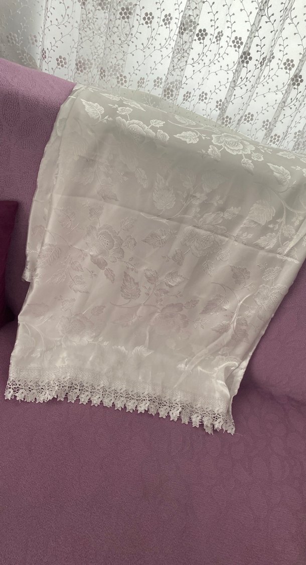 İnce işleme desenli, dantel kenarlı, geleneksel tarzda açık beyaz güneşlik