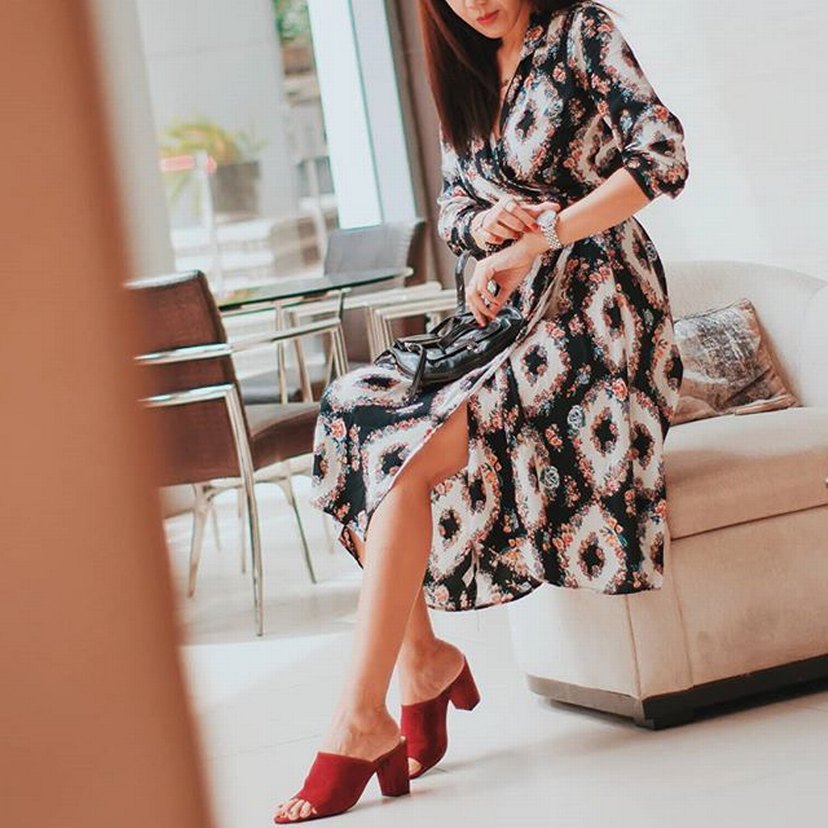 Desenli uzun kollu elbise