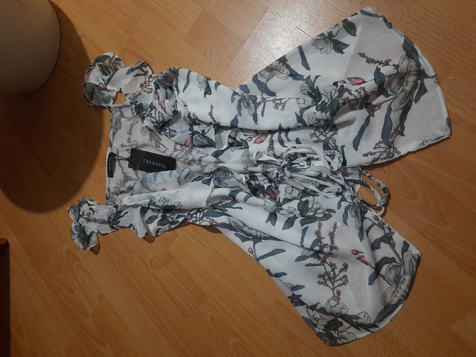Gri desenli, kısa ve bol kesim kadın tulumudur. V yaka ve askılı kollara sahip, yumuşak sentetik kumaştan drapeli tasarımdadır.