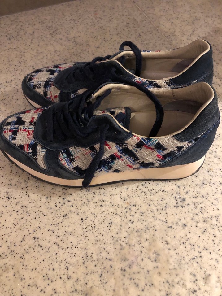 Kadın spor ayakkabısı, desenli tekstil üst yüzey, blok topuk ve Velcro kapama özelliklerine sahiptir. Koyu çok renkli, günlük sokak stili için uygundur. Kullanılmış ancak defosuzdur. Lütfen açıklama ve resimlere görw değerlendiriniz iade kabul edemiyorum.