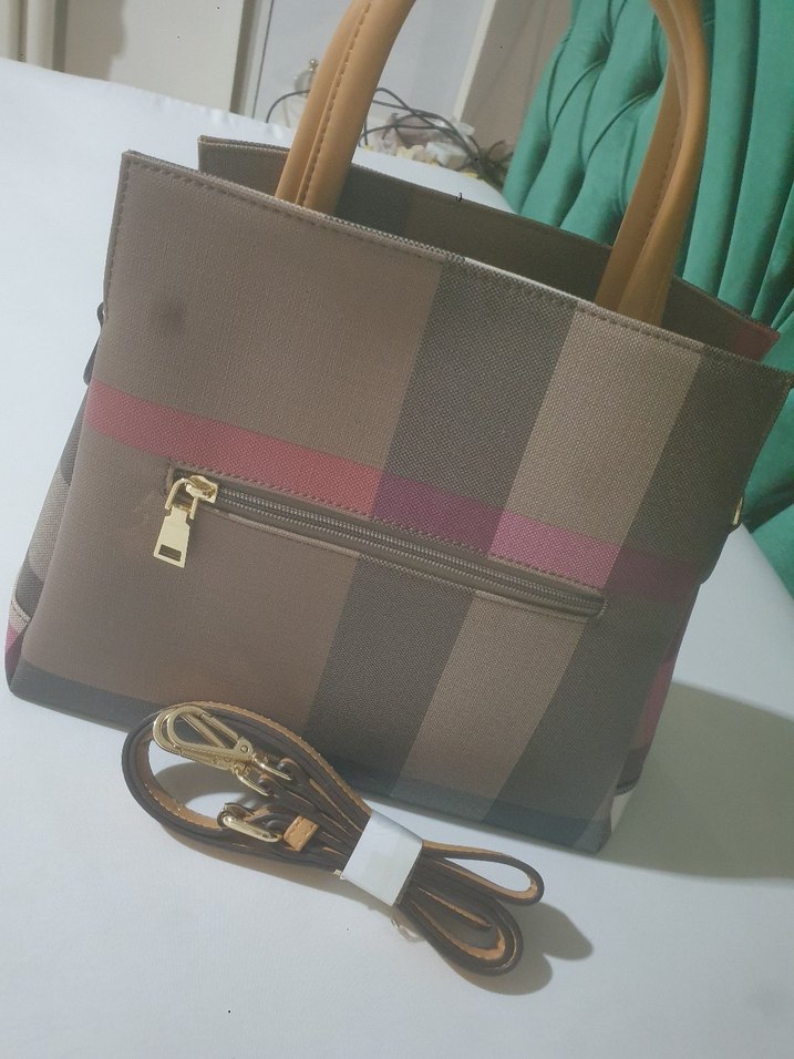 Kahverengi, desenli ve tokalı kadın çantası. Sentetik kumaştan üretilmiş, önünde fermuarlı cep ve çıkarılabilir askı bulunur. Trendy casual tarzına uygundur. yurt dışından