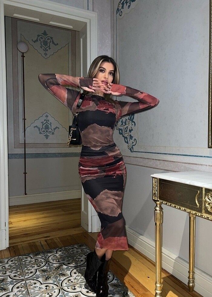 Desenli kalem elbise