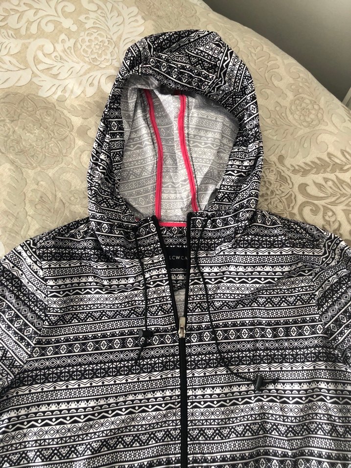 Gri renkli, desenli ve kapüşonlu. Fermuarlı, uzun kollu ve vücuda oturan kesimdedir. Günlük kullanıma uygundur.