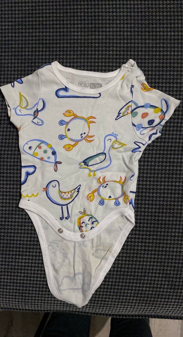Pamuklu kumaştan, kısa kollu ve baskılı desenli bebek body. Kolay giydirme için düğmeli, sokak stili uygun.