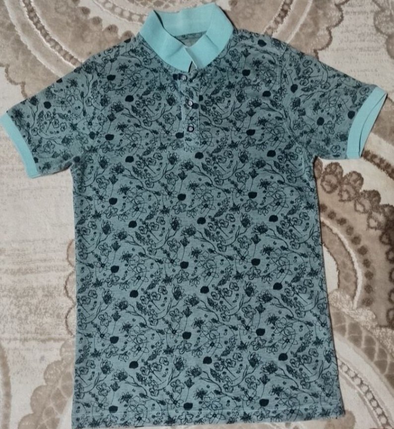 Baskılı desenli, düğmeli yakalı ve kısa kollu erkek polo tişörtü. Rahat kesim ve günlük sokak stiline uygun.