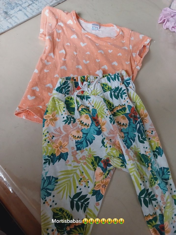 Kısa kollu pastel tonlarda dantel detaylı üst ve renkli çiçek desenli rahat pantolondan oluşan kız bebek takımı. aynı desen tartıda mevcut 3 lü satışta