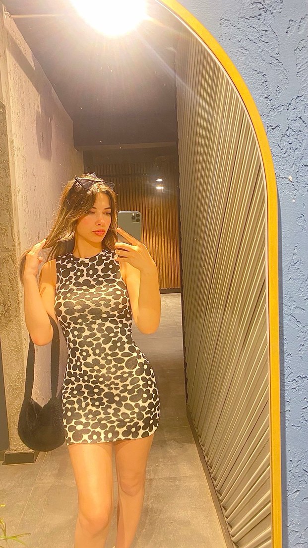 Siyah ve beyaz çiçek desenli,kolsuz ve mini boy, fit kesim elbise. Sentetik kumaştan, sokak stiline uygun.