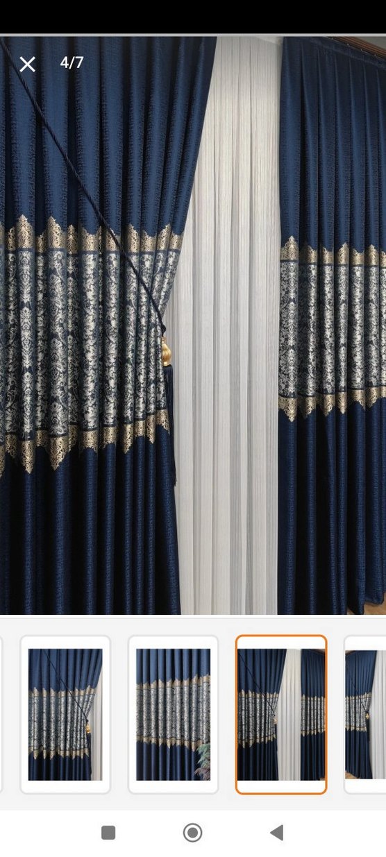 Koyu mavi konvansiyonel perde, desenli detaylara ve hafif parlaklığa sahip, odanıza şıklık katar. sıfır ürün