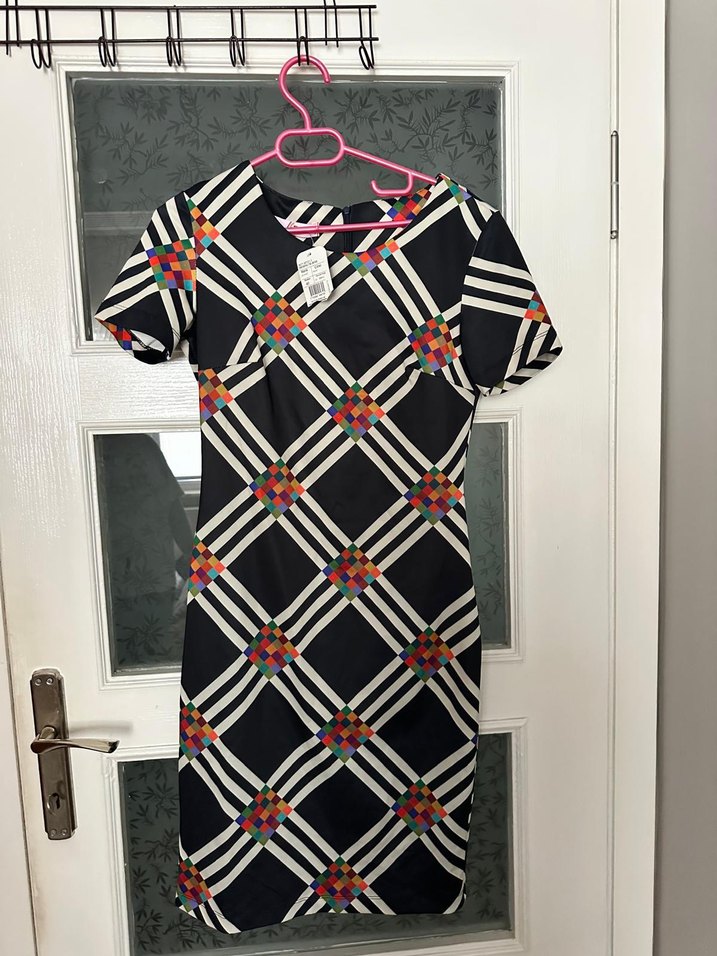 Desenli Lacivert Kadın Elbise, Beden 40