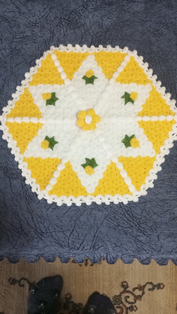 Nakışlı desenlere sahip, sarı, beyaz ve yeşil renklerde lif
