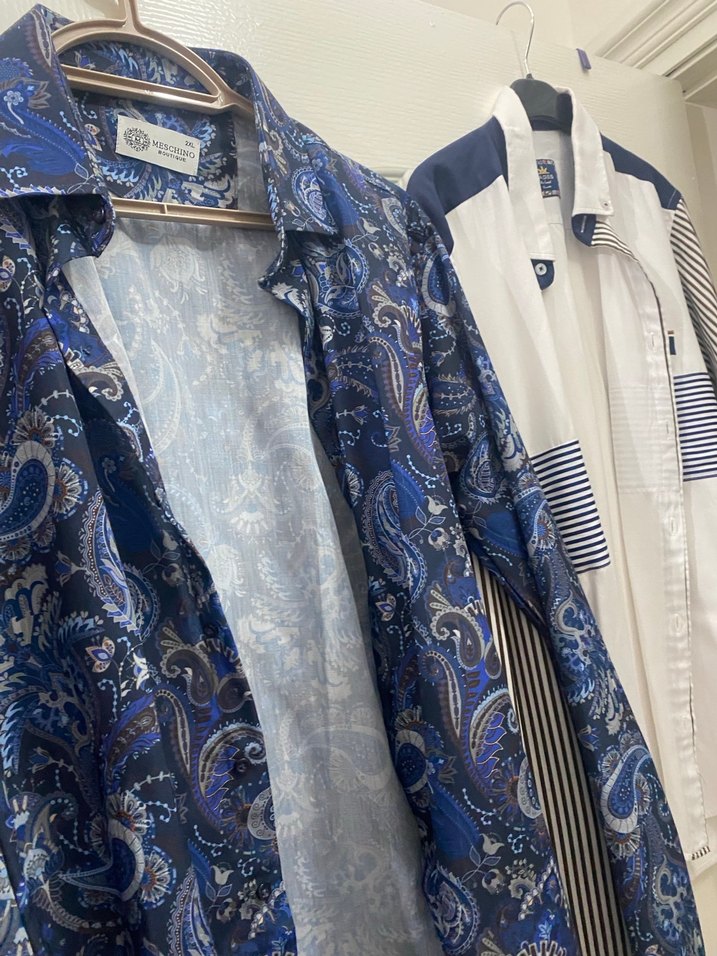 Desenli Mavi az kullanılmış iki erkek gömlek