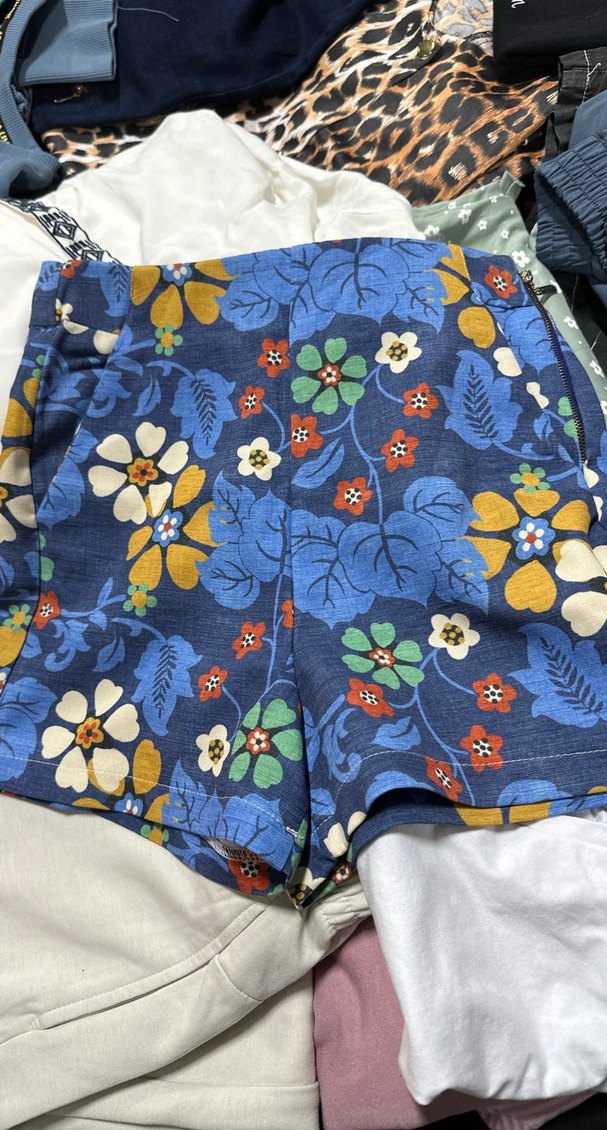 Desenli, düğmeli ve koyu mavi tonlarında, vintage bohem tarzını yansıtan mini şortu. Günlük kullanım için uygundur.