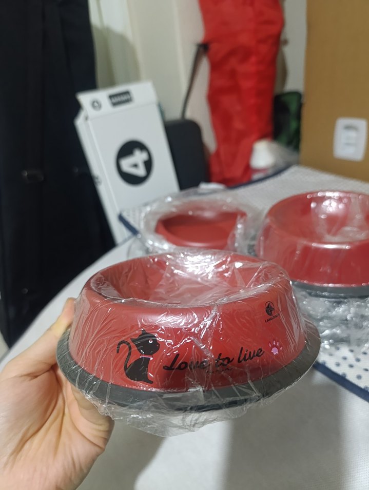 Kaymaz tabanlı koyu kırmızı kedi mama kabı, üzerinde kedi silueti ve 'Love to live' yazısı bulunur. Adet fiyatıdır.