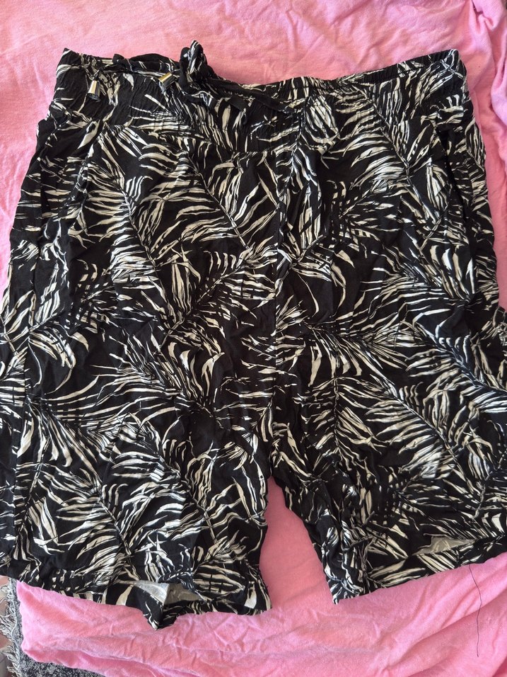 desenli, pileli midi hamile şortu, sentetik kumaştan ve bol kesimdir. Koyu siyah renkte, günlük kullanıma uygun cesur ve bohem tarzda.