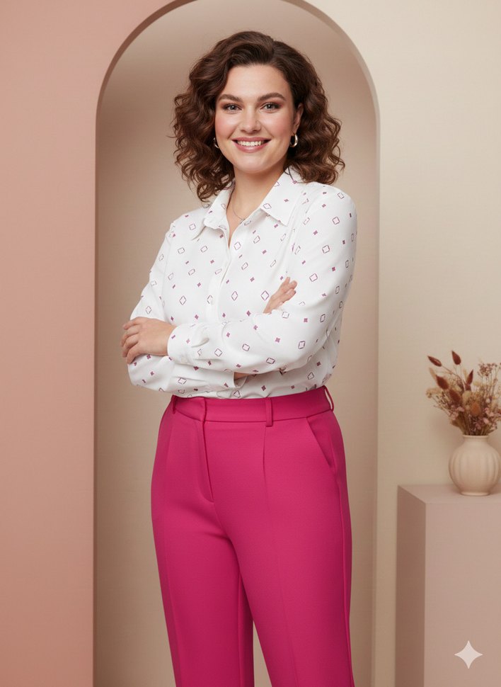 Kadınlar için pastel desenli, normal boy ve ofis gömleği. ve uzun kolludur.