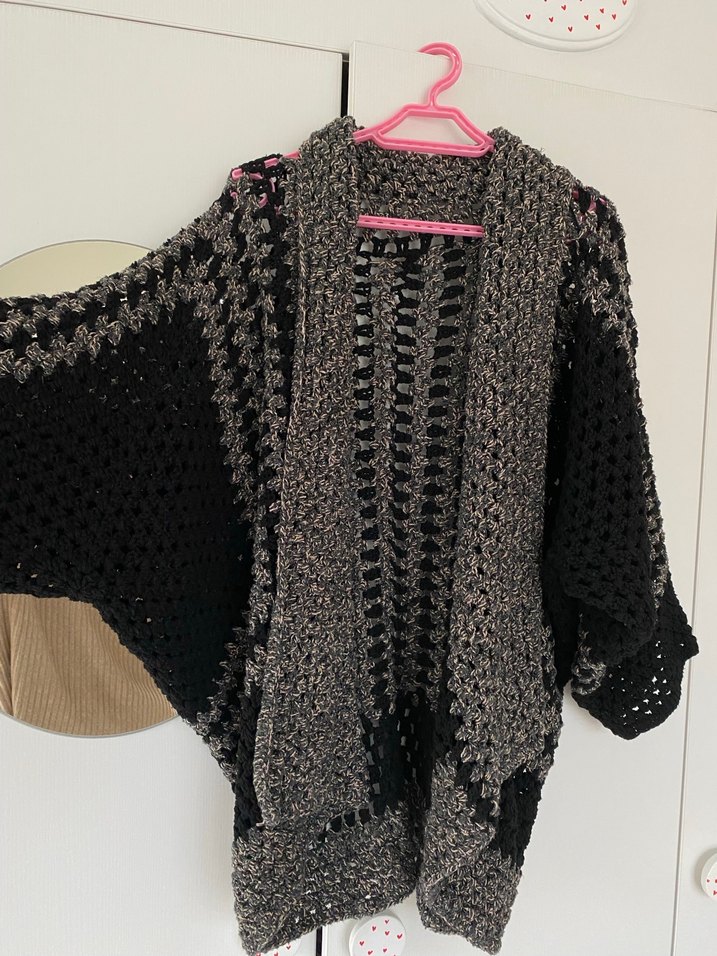 örgü bol kesim kadın hırka.bohem ve retro tarzda, günlük kullanıma uygun. Hiçbir sorunu yok marka temsili hiç giyilmedi etiketi yok marka yok standart