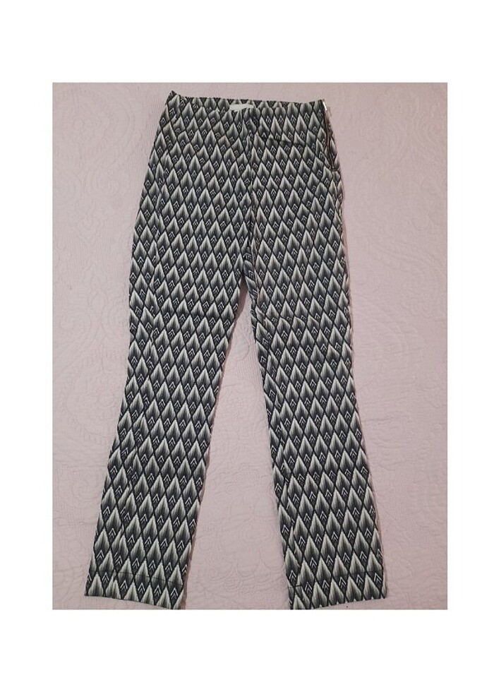 Cigarette kesim, markası h&m, 2-3 kez giyildi, kusuru yok, hafif likralı ama diz yapmıyo fit gösteriyo, siyah beyaz desenli