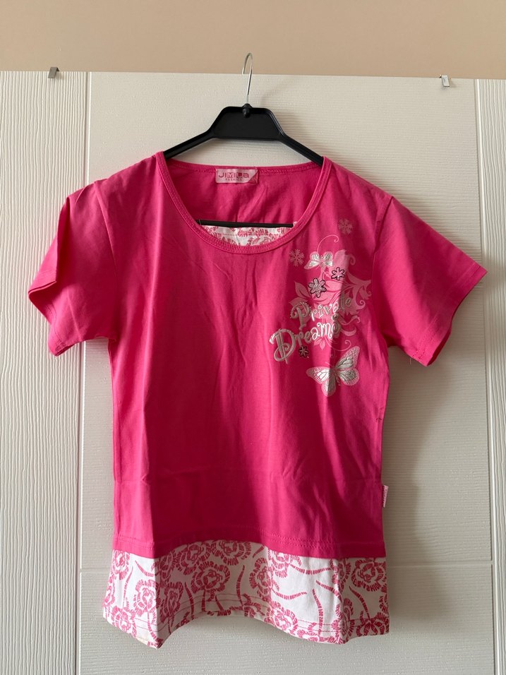 Desenli Pembe çocuk Kısa Kollu Tişört