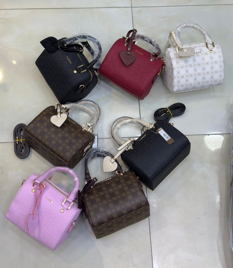 Canlı pembe renkte, desenli yüzeye ve tokalı tasarıma sahip deri kadın çantası, modern klasik ve Paris tarzını günlük kullanıma sunar.
