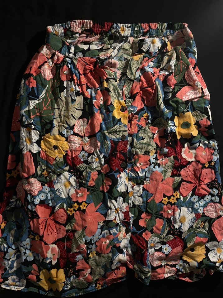 Rahat kesim, pilili, çok renkli çiçek desenli fotoğrafta belirtildiği gibi bir düğmesi yok