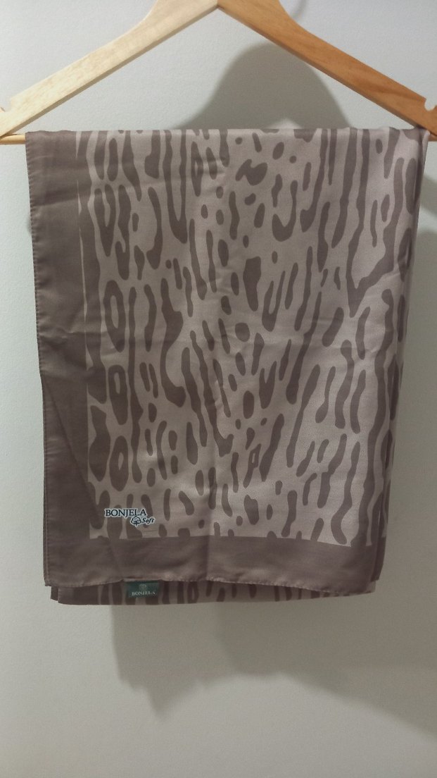 Gri ve kahverengi tonlarda, drapeli desene sahip kadın fular, yumuşak sentetik kumaştan üretilmiştir. Bohem ve sokak stili için uygundur. 2 kez kullanıldı defosuz