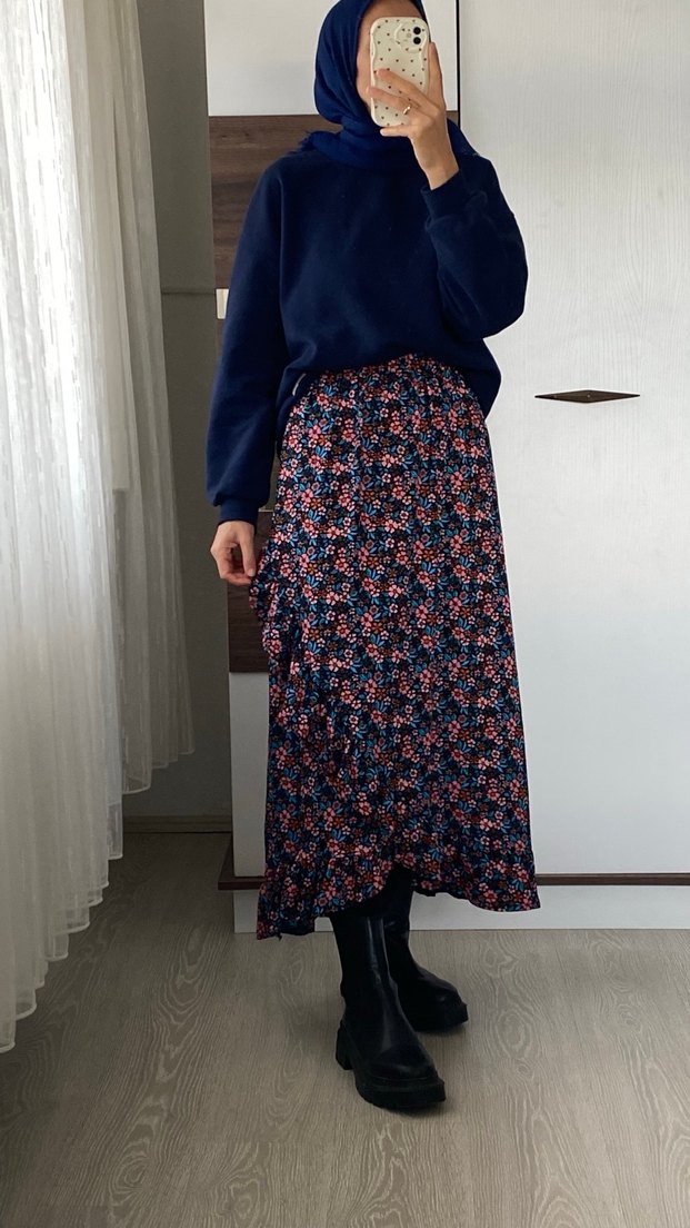 desenli midi etek, salaş kesim ve dökümlü tasarıma sahip, rahat ve trend bir görünüme sahiptir.