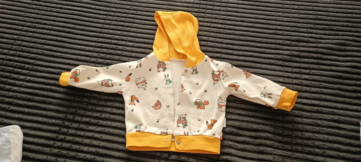 Kapüşonlu, uzun kollu, çıtçıtlı sarı kapüşon . Renkli baskılı desen ve yumuşak, pamuklu kumaşa sahip. Günlük rahat sokak stili için uygun.