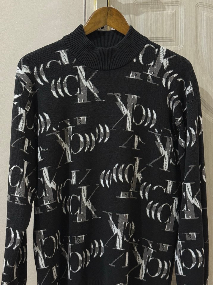 Desenli Siyah Boğazlı erkek kazak