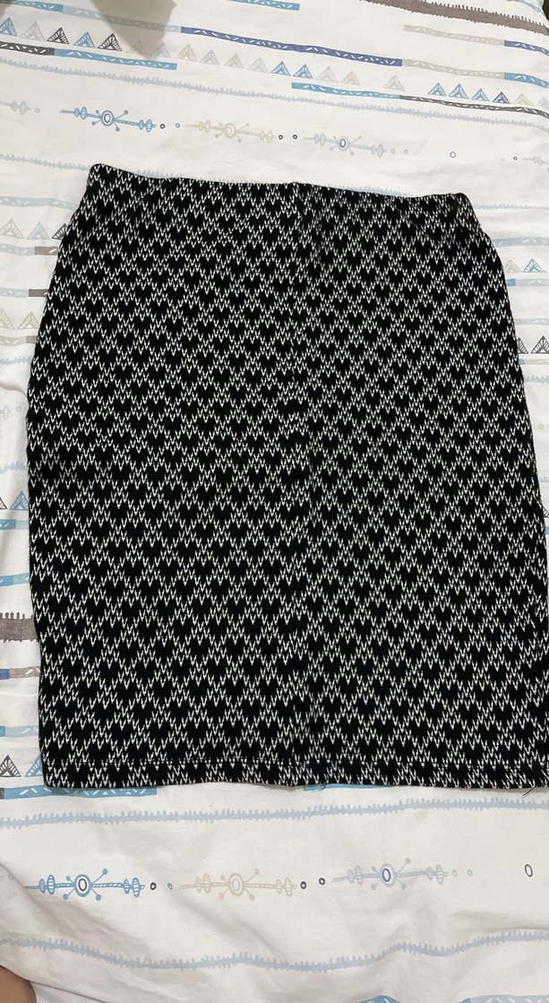 Yumuşak sentetik kumaştan, desenli ve örme yapıda, normal boyda, dar kesim siyah etek.Günlük sokak tarzına uygun.