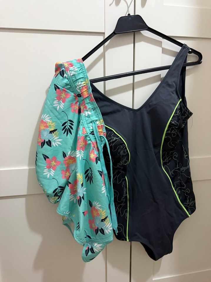 Siyah, kolsuz mayo, desenli yan paneller ve neon detaylarla drapeli tasarıma sahip, bol kesim ve bohem tarzda, plaj için uygun.
