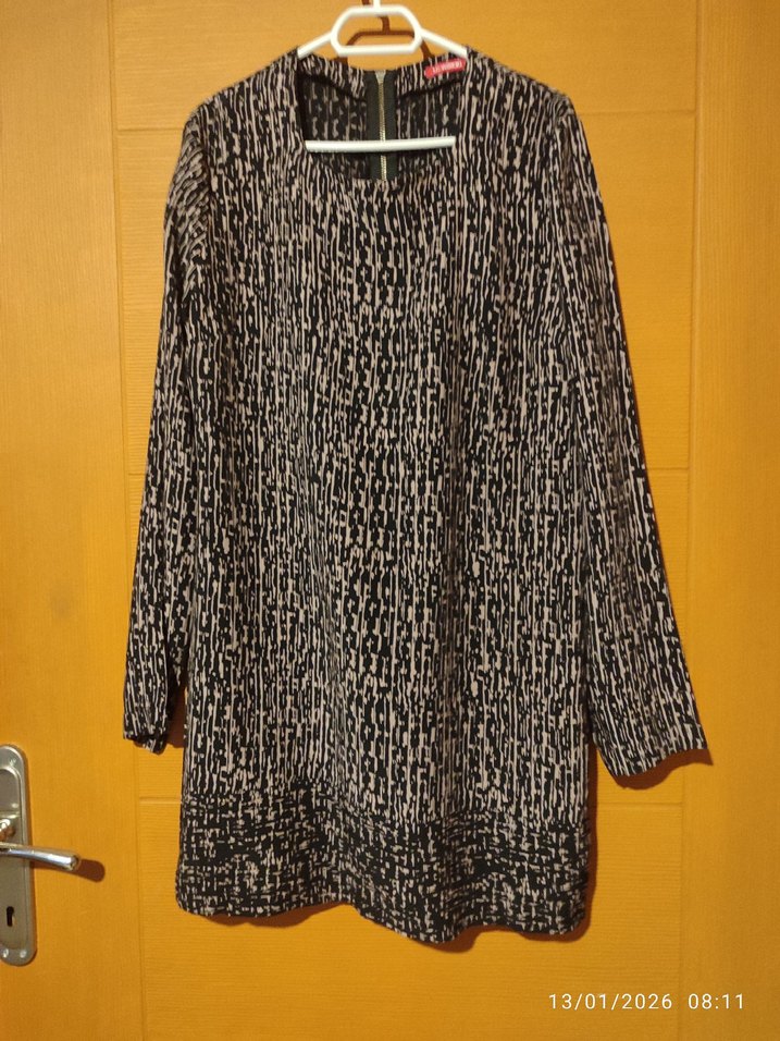 Desenli, siyah hamile tunik, midi boy ve uzun kollu. Salaş kesimi ve pileli detaylarıyla sokak stiline uygun, günlük kullanıma elverişli.