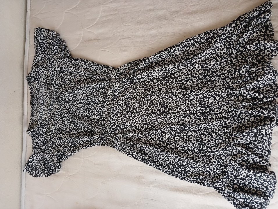 Yumuşak sentetik kumaştan, siyah zemin üzerine beyaz çiçek desenli, volan detaylı ve vücuda oturan hamile uzun etek. Günlük sokak modasına uygundur.