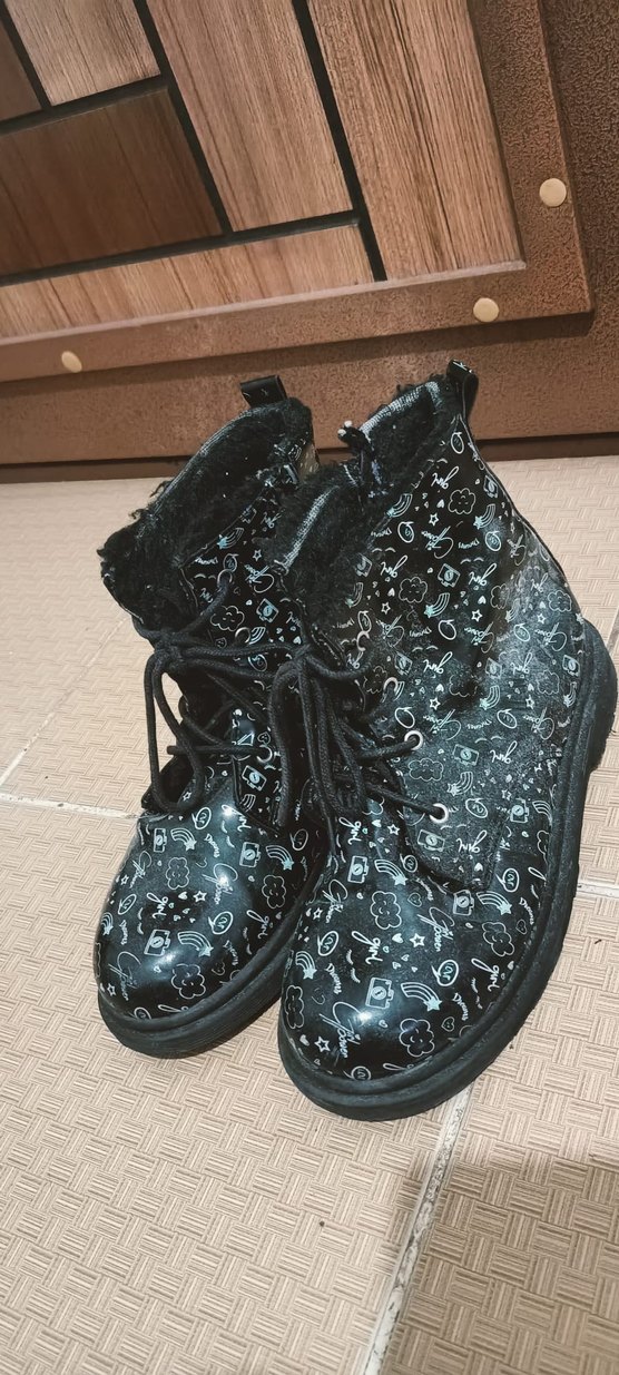 Desenli siyah kauçuk kadın botları, bağcıklı. Goth ve punk tarzını yansıtan karanlık, dikkat çekici tasarıma sahip. Günlük kullanıma uygun.